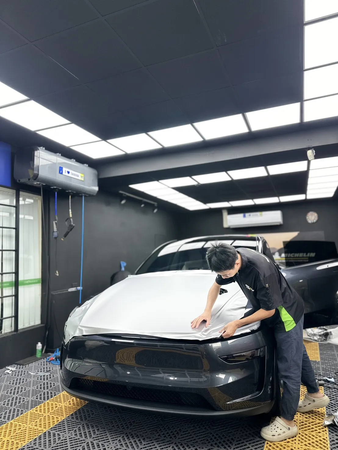 為確保每台特斯拉都能獲得最高標準的施工品質,本方案每週僅服務一位車主。從車輛清潔、膜料裁切到最終修整,每個環節都由經驗豐富的技師團隊嚴格把關,施工時間約需 7 個工作日。